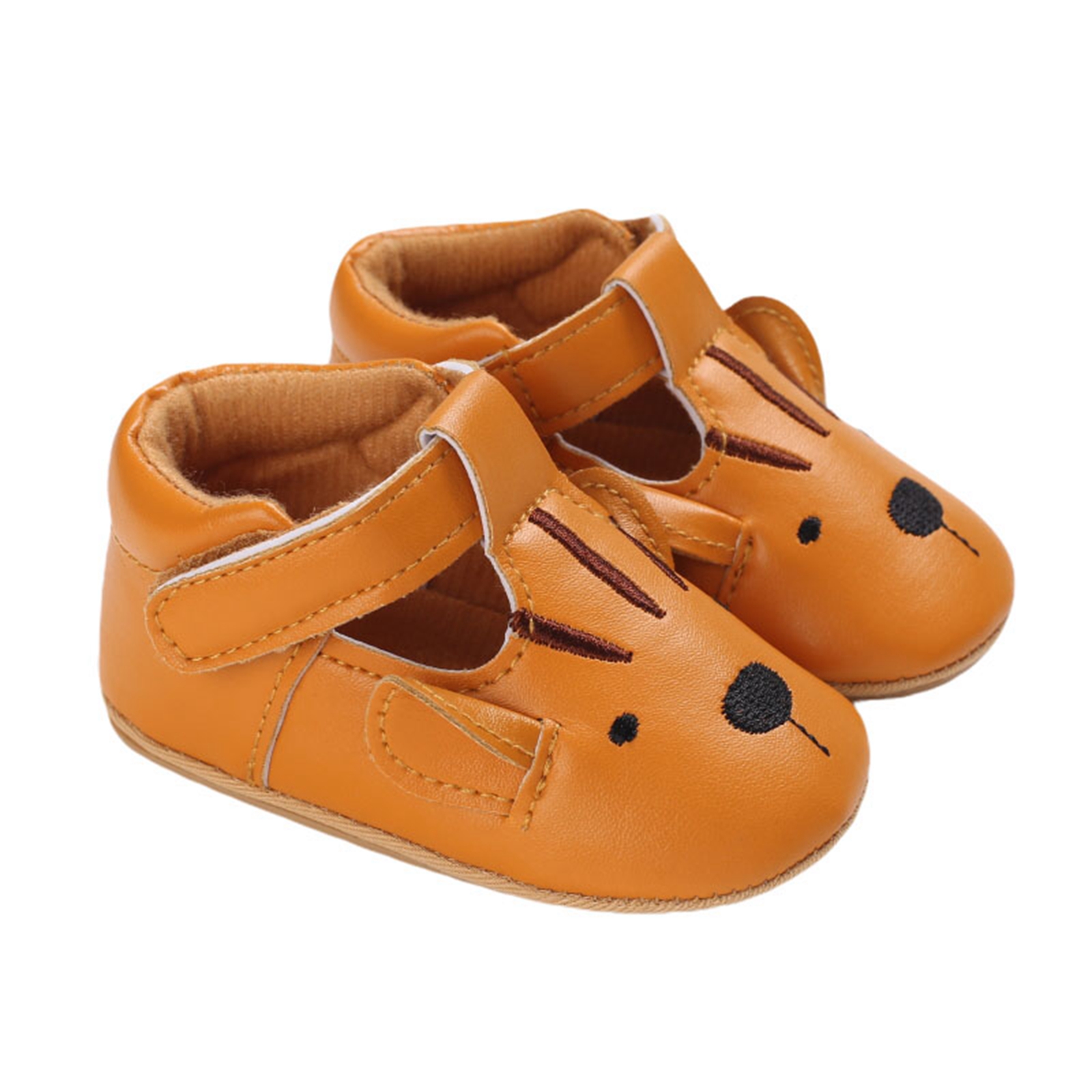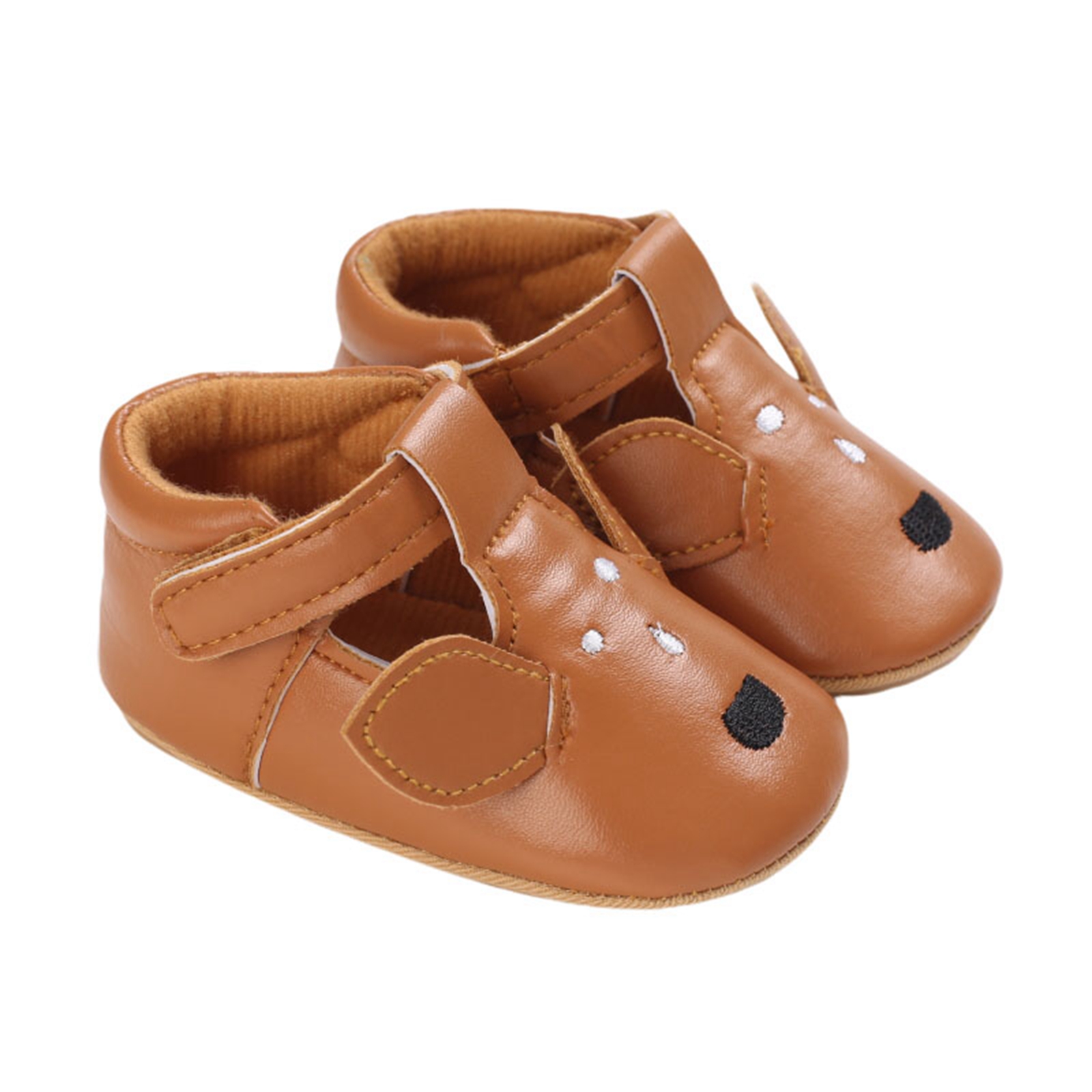 Baby Boys Girls Leather Shoes, Non-Slip Soft Sole T-Strap Crib Shoes Infant Moccasins