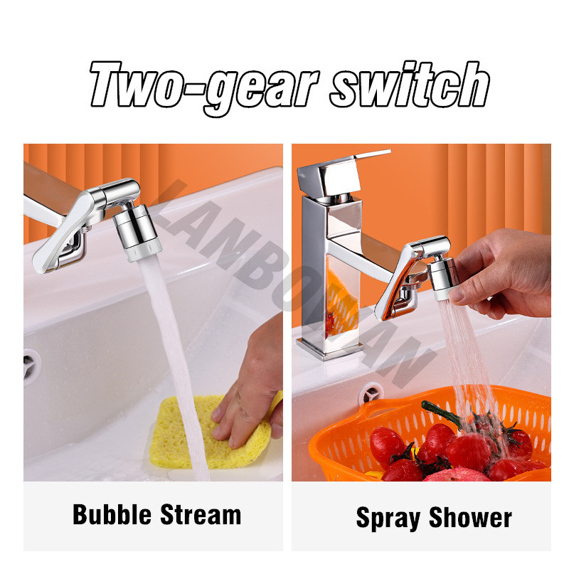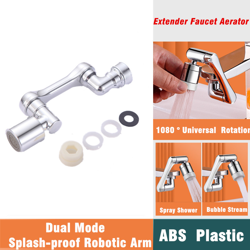 1080 Degree Universal Rotation Swivel Robotic Arm Dual Mode Extender Faucet Aerator Kitchen Washbasin Plastic Tap Splash Filter Bubbler Nozzle