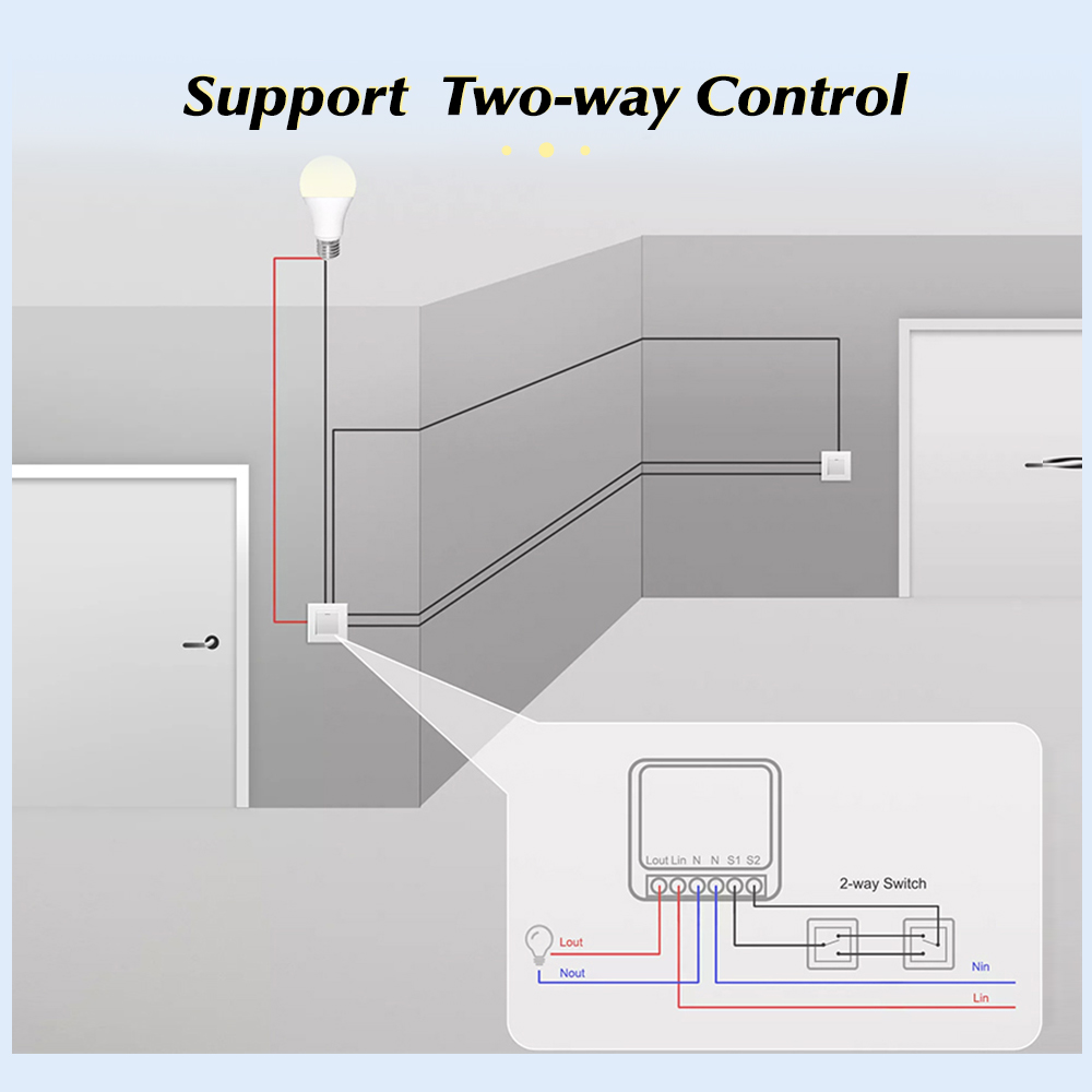 Can be directly connected to the device without connecting a switch. It can also be connected behind the switch to support single control switch