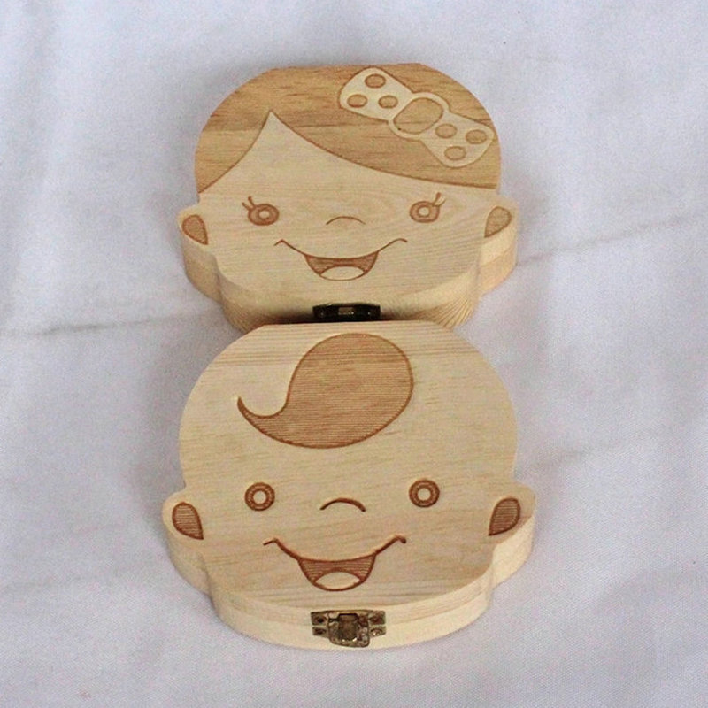 1PC Spanish English Baby Wood Tooth Box Organizer Milk Teeth Storage Collect Teeth Umbilical Cord Save Gifts for Kids Girls