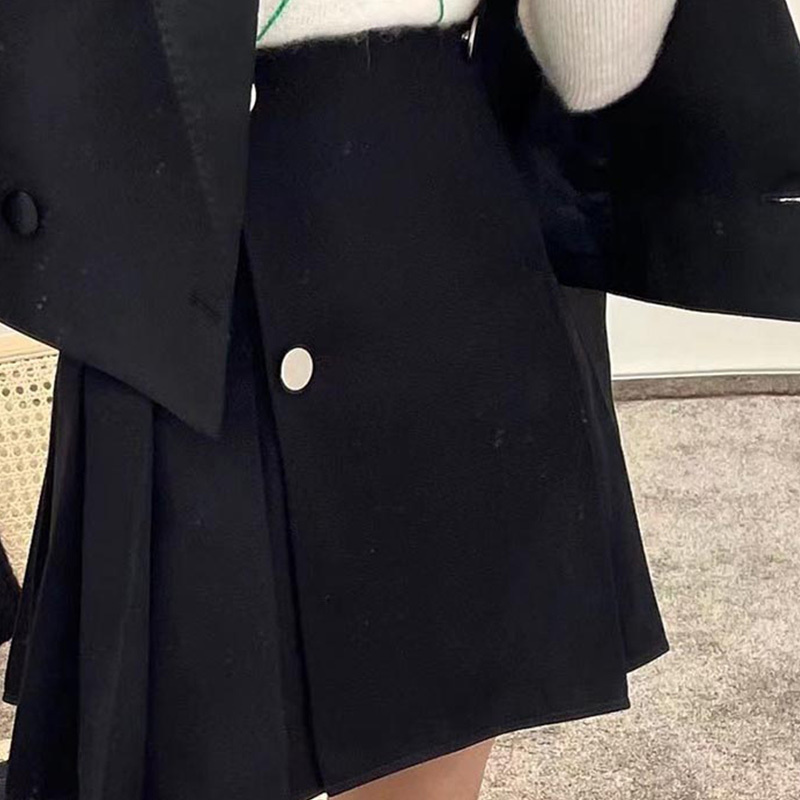 22 Spring Fashion High Waist Uniform Pleat Skirts Designer Metal Double Breasteds Mini Skirt Luxury Simple Black Pleated SkirtsA0401