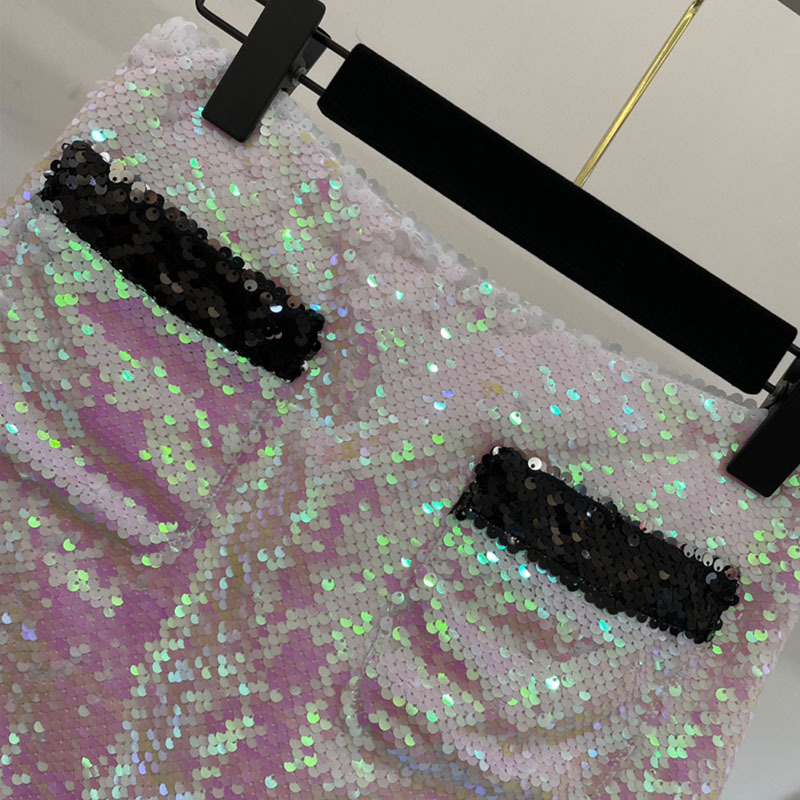 22 Summer Sequins Pink Mini Skirt Set Women Sexy Chain Buttons Wrapped Chest Camisole Top Show Pockets Hips A Line Skirt
