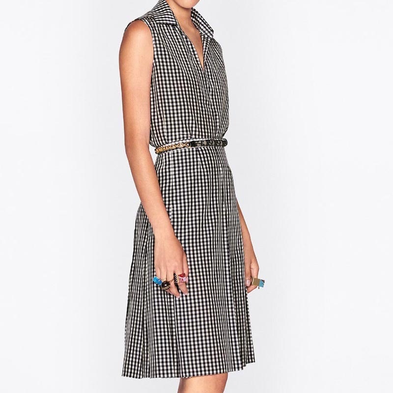 22 Vintage Plaid V Neck Sleeveless Navy Shirt Women Elegant Blue White Plaids Pleated Shirts Casual Lapel Loose Pullover Shirts