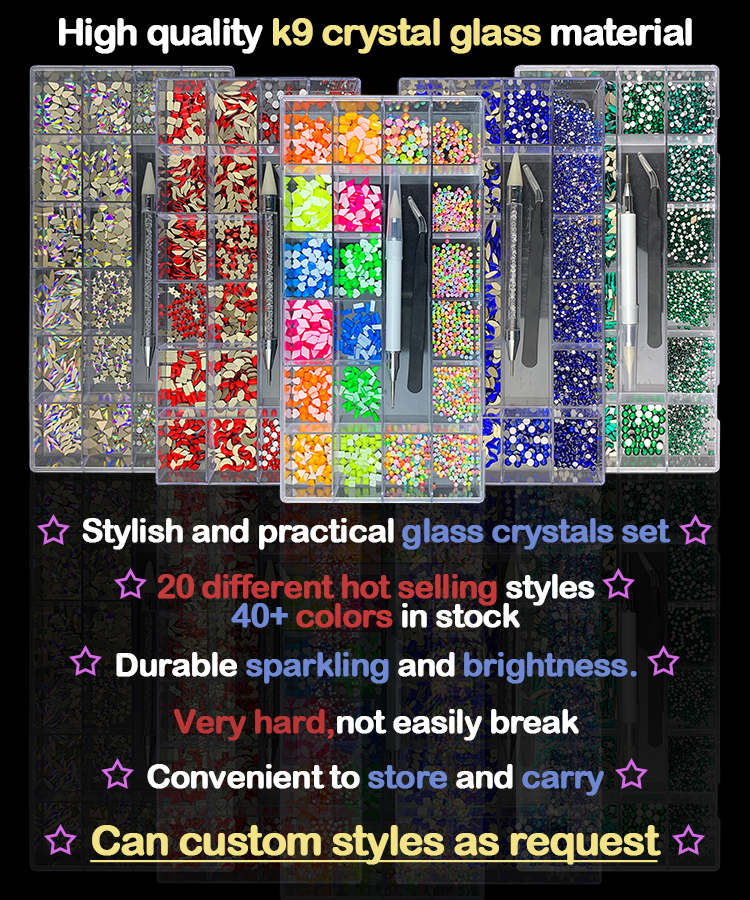 Rhinestones Material : The high quality K9 Crystal Glass Rhinestones for Nails