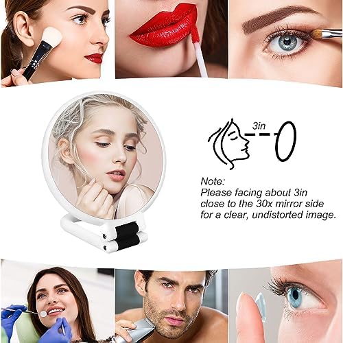 - 2-Sided: 1x HD mirror on one side and 30x strong magnifying mirror on the other. Get both 1x and 30x mirror for one price.