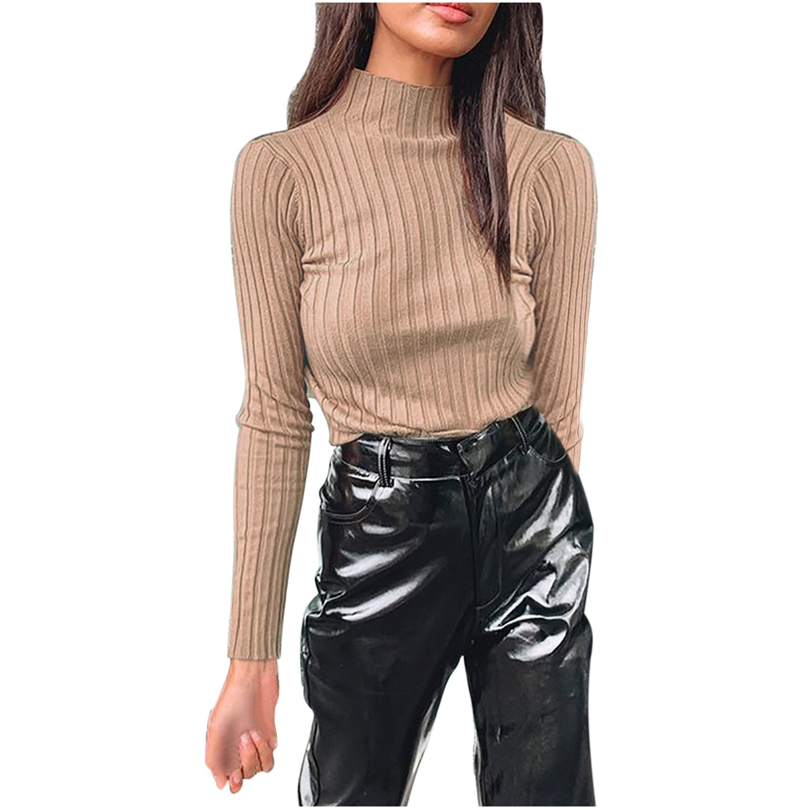 Women's Fashion Solid Long Sleeve Slim Turtleneck Pullover Sweater Blouse