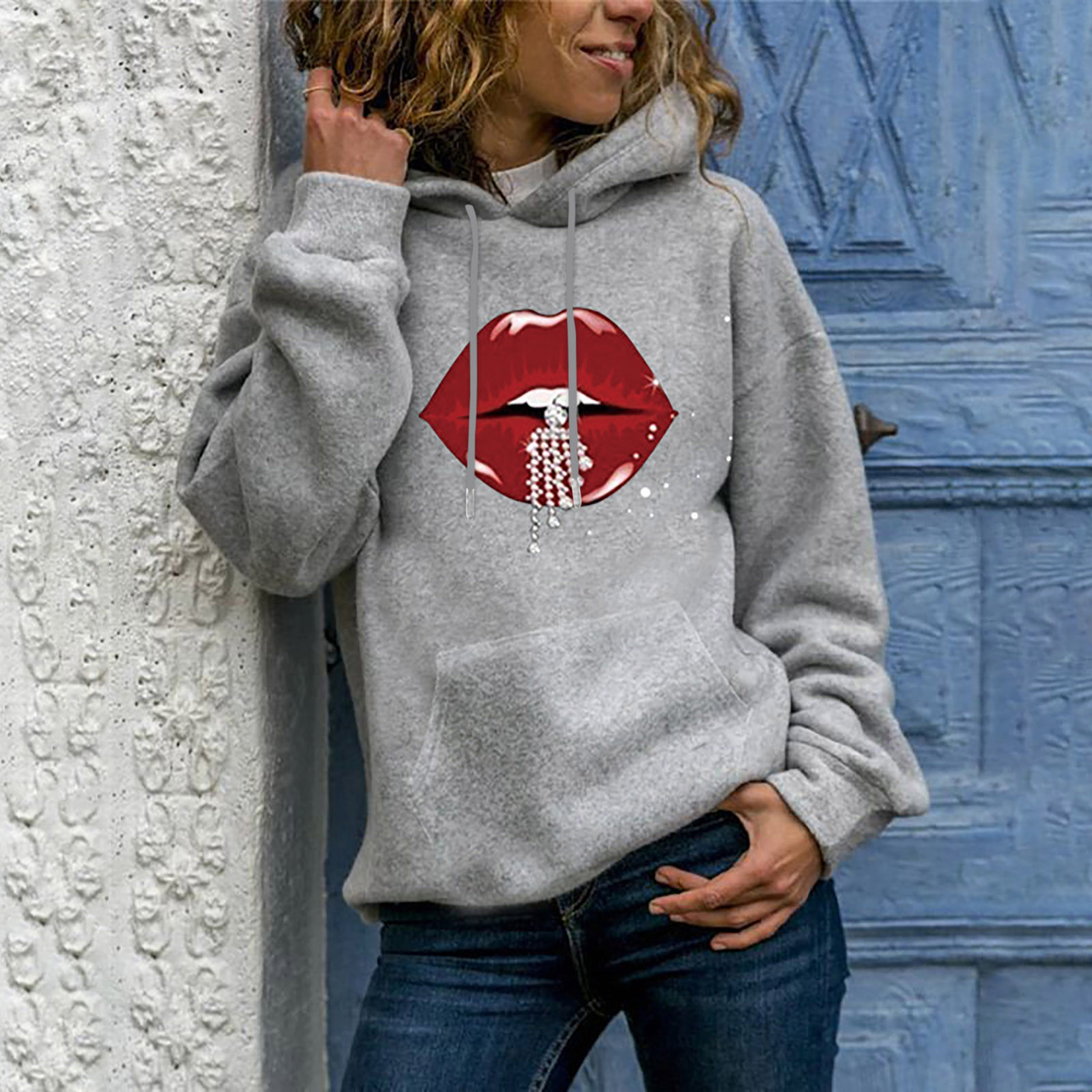Winter Womens Casual Long Sleeve Tops Ladies Print Pullover Sweatshirt Blouse