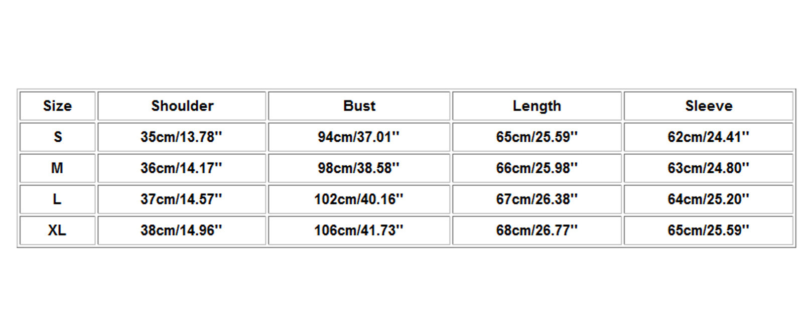 Size Shoulder Bust Length Sleeve