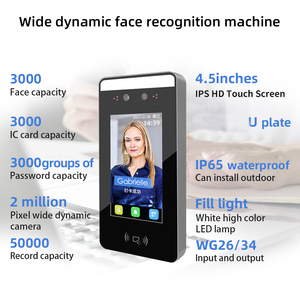 4.5 inch RFID Card Waterproof Touch Screen Face Recognition Dynamic Fingerprint Employee Time Attendance Access Control