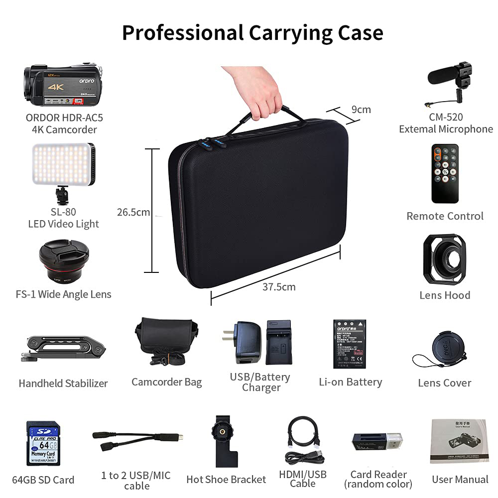 4K Optical Zoom Video Camcorder: Ordro AC5 offers 4K high-resolution images quality and 24M definition photos to photographers who can wonderful and valuable moment. The 4K video camera has 12X optical zoom that can easily zoom in on distant scenes without affecting the detailed pictue quality.