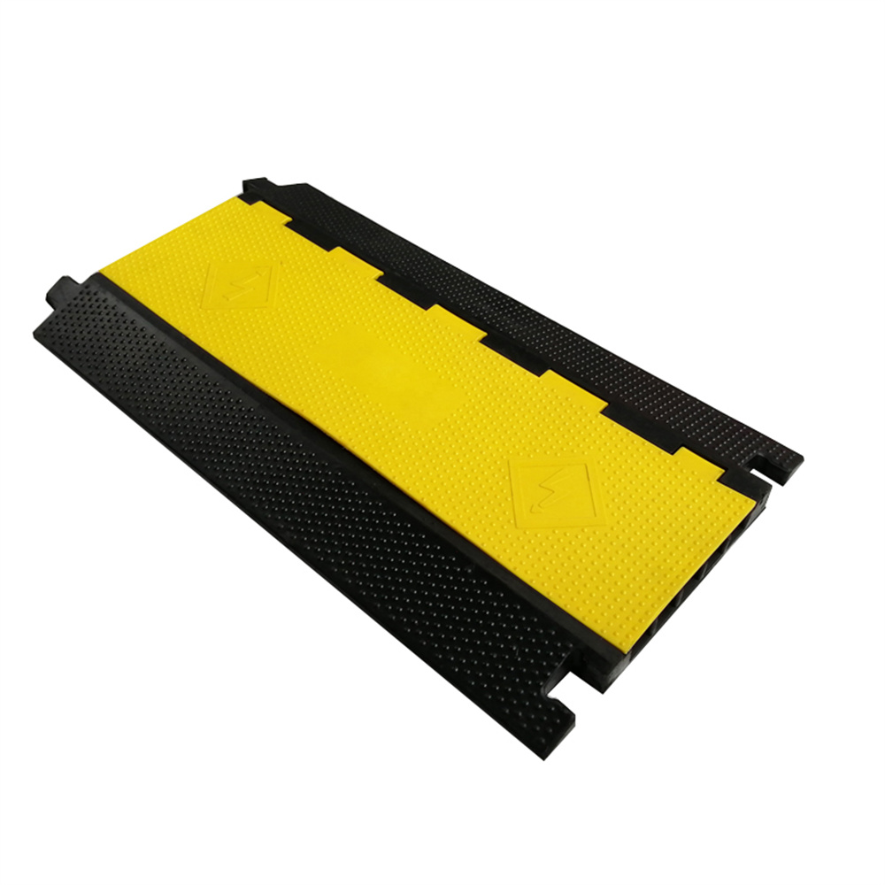 It is usually being placing at the passage of the factory, parking lot, exhibition centre, performing-arts centre, stadium or concerts, especially those places which cars often pass by. This cable protector can easily hide those cables and prevent them being exposed outside, meanwhile, it protects cables from being crashed or pressed. It's incredible insulativity can withstand 2500V voltage. The bright yellow safety lid with warning symbols can easily attract people's attention.
