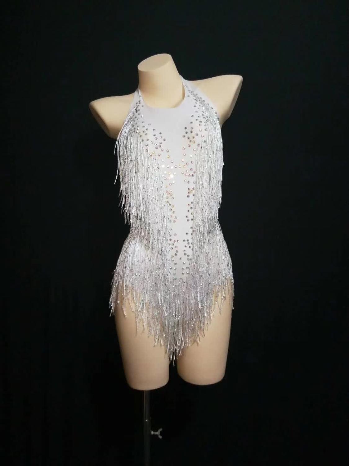 5 Colors Sparkly Gold Rhinestones Tassel Bodysuit One Piece Leotard Dance Wear Women's Celebrate Female Singer Crystals Costume