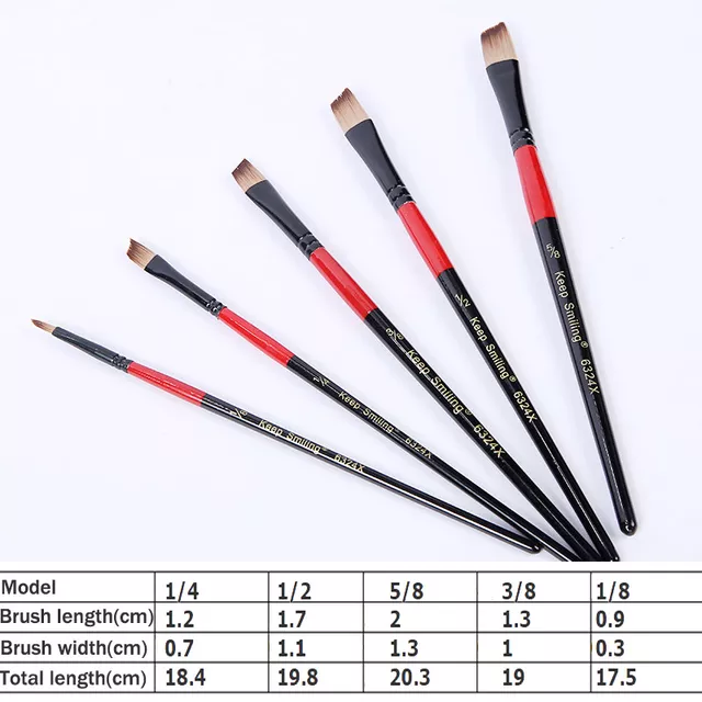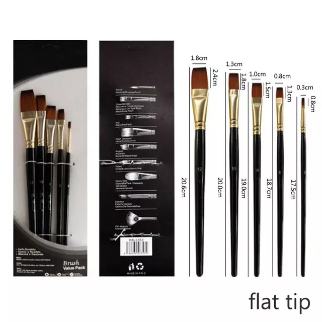 This acrylic artist paint brush set includes 5 different sizes which will meet most of your creative painting needs, from thick strokes to fine detailing.