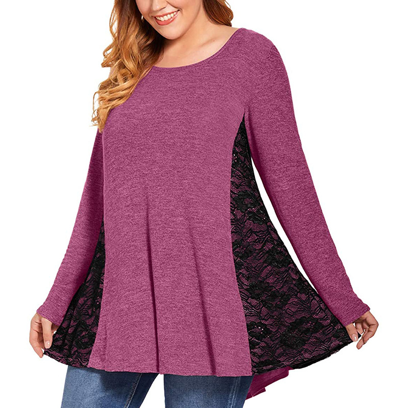 5XL 6XL Plus Size Flowy Tops Women Long Sleeve Lace Patchwork Elegant Blouse Shirt Female Loose Oversized Long Peplum Tops