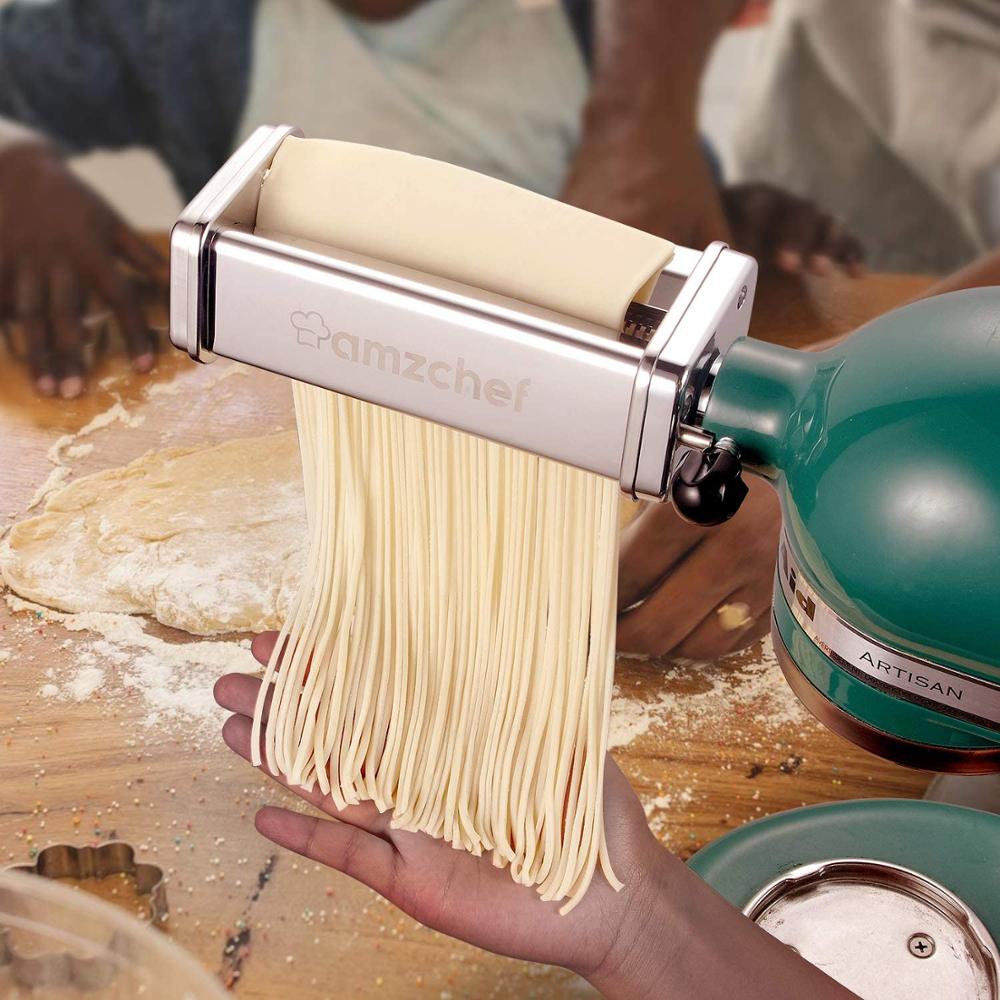 This AMZCHEF pasta roller & cutter attachments 3-in-1 set fits ALL KitchenAid Stand Mixer perfectly. It not only ensures the freshness of pasta, but also makes it's very convenient to make homemade pasta. Nothing beats home-cooked meals,this pasta roller set of stand mixer attachments will help make those happen!