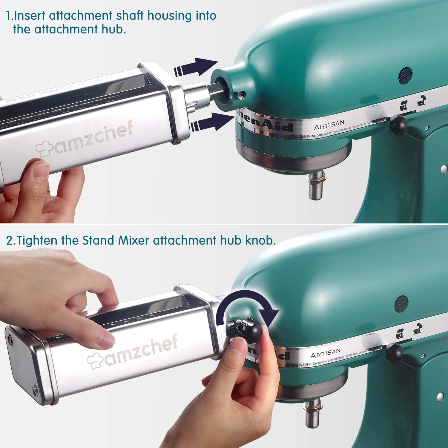 AMZCHEF 3-Piece Pasta Roller & Cutter Set Attachment Stainless Steel Pasta Noodle Maker Accessories For Kitchenaid Stand Mixer