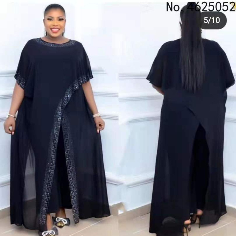 African Dress Clothes Women 2 Piece Set Long Tops Robes And Pant Suit Summer Diamond Streetwear Chiffon Africa Clothing Set