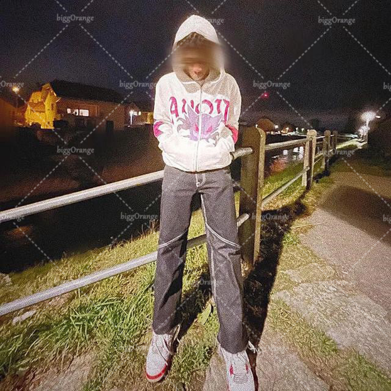 Anime Print Zip Hoodie Women Cotton Loose Top Japan Harajuku Y2K Style White Hoodie Gothic Pop Streetwear