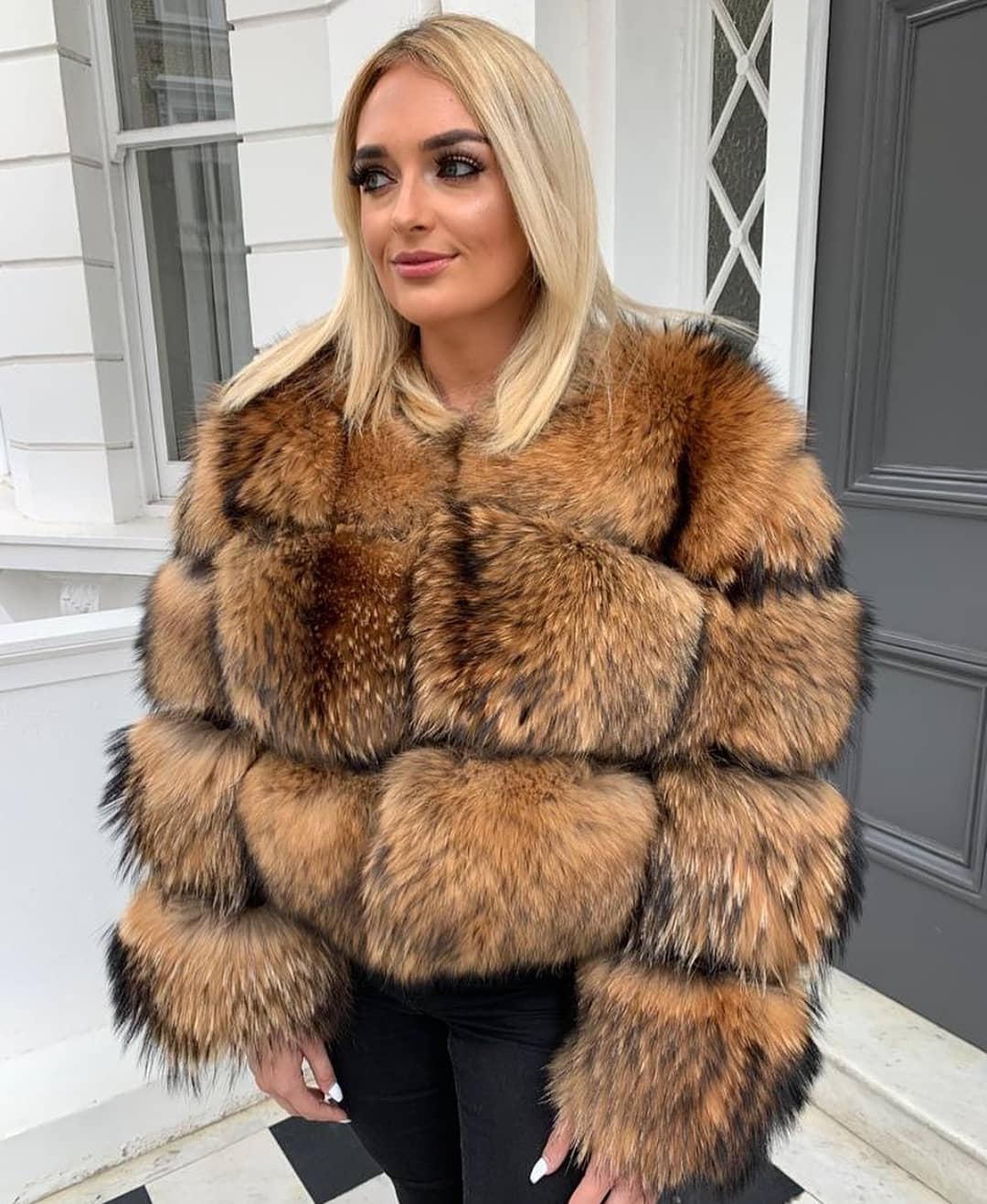 Arrival Real Raccon Dog Fur Coat Full Pelt O-Neck Thicken 55cm Short Warm Striped Design Women Raccon Fur Winter Jocket