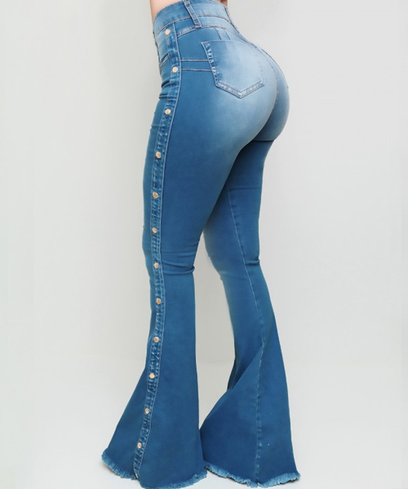 New Arrival Womens Fashion Skinny Flare Pants Washed Jeans Denim Pants Butt Lift Vintage Jeans Ladies Casual High Waist Trousers