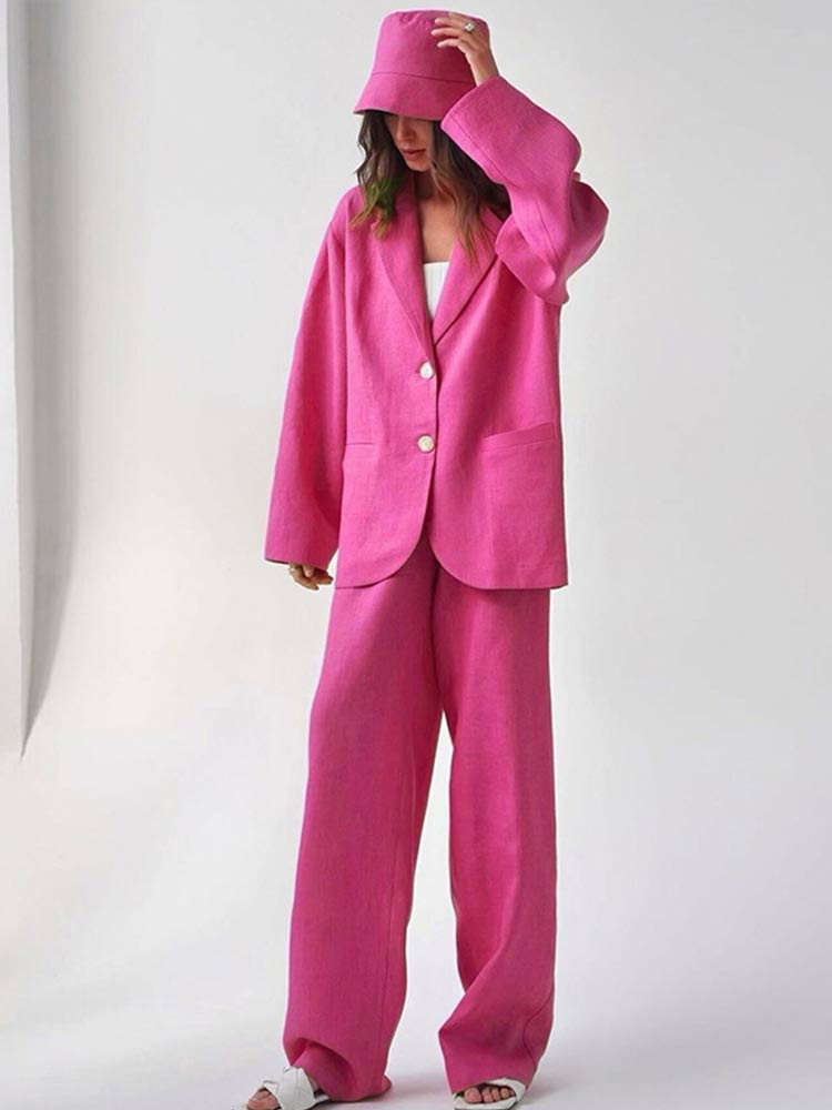 Autumn Green Blazer Pants 2 Pieces Sets Women Casual Long Sleeve Jacket Suits Loose High Waist Wide Leg Trousers Outfits