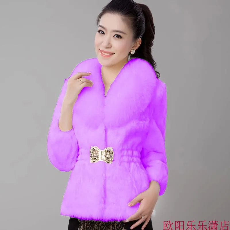 Autumn&Winter Ladies Temperament Butterfly Button Short White Faux Fur Coat Waist Slimming Jacket Feminina Top