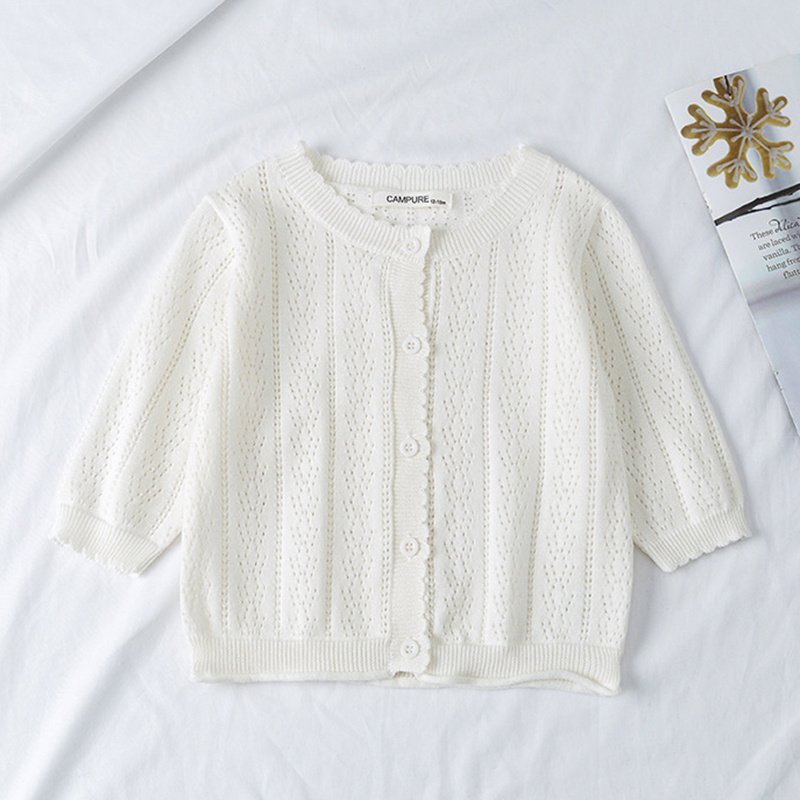 Baby Girls Cardigan Thin Coat Female Baby Princess Hollow Knitted Sweater Sunscreen Air Autumn Spring Coat