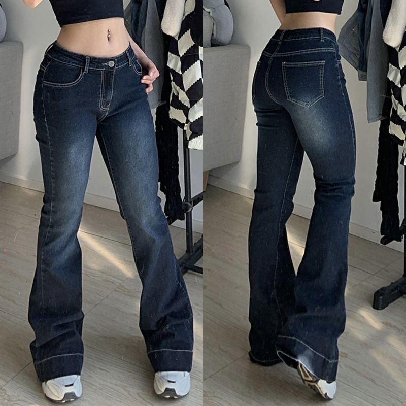 Bell Bottom Jeans for Women Low Waist Trousers Stylish Gradient Blue Flare Jeans Ladies Denim Pants Rise Skinny