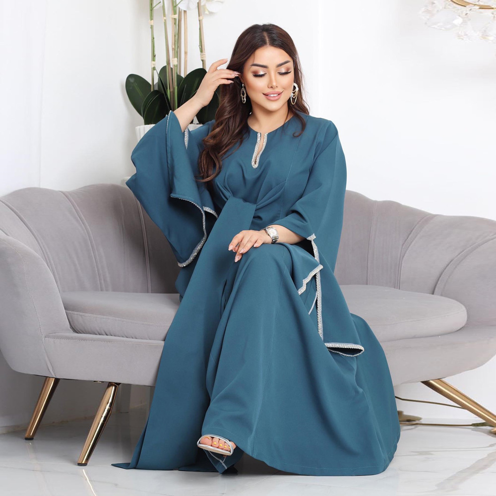 Blue Maxi Dubai Evening Party Formal Dress Ramadan Abayas For Women Muslim Islam Kaftan Jalabiya Clothing Long Sleeves