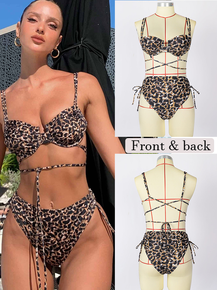 COOBBU Halter CUP Swimwear Sexy Bikinis Patchwork Swimsuit Women Bathing Suit Leopard Bikini Sets Solid Beachwear Biquini