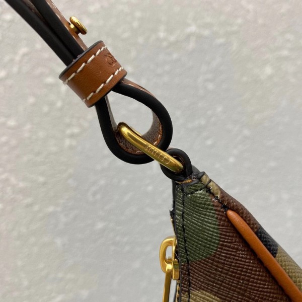 Celine’s technical and artistic expertise is expressed to the fullest extent in the Ava bag. Designed in Camouflage canvas and celine print, the signature of the French fashion house, it offers golden finishes coupled with calfskin leather. Its elegant crescent moon design can be carried in the hand or on the shoulder by means of an adjustable shoulder strap. This accessory, full of character, impresses with its modernity, combined with a strong couture accent.