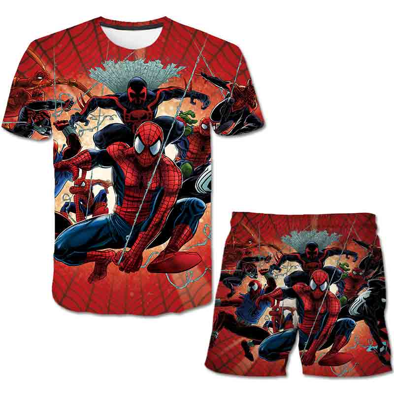 Children's 3D T-Shirt Set Girls Kids Spider-man Short Pant 2pcs Child 4-14T Baby Cartoon Tops Clothing Short Suit