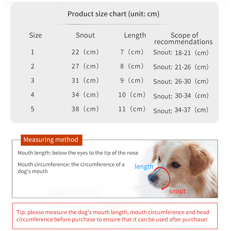 Size 2: Mouth length is 8cm, mouth circumference is 27cm, head circumference is 34-48cm, weight is 100 grams