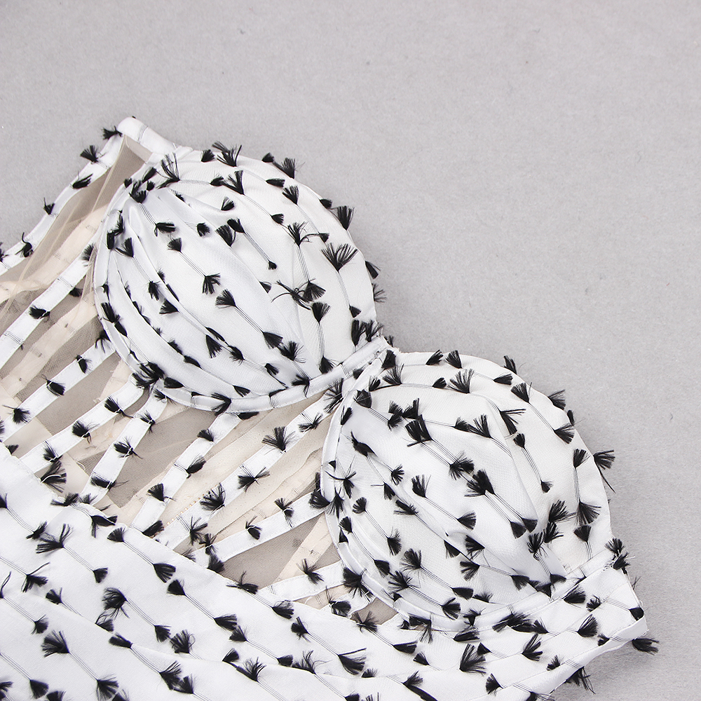 DEIVE TEGER Women's Sexy Diagonal Collar One Shoulder Backless Hollow Out Mini Jacquard Dress Elegant Party