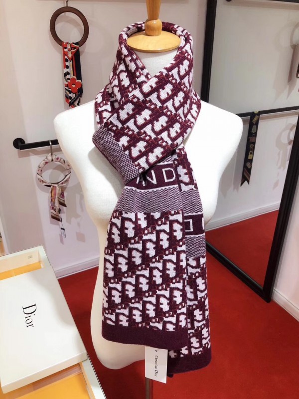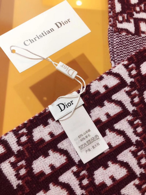 Dior CD Oblique Stole In Bordeaux Wool and Cashmere