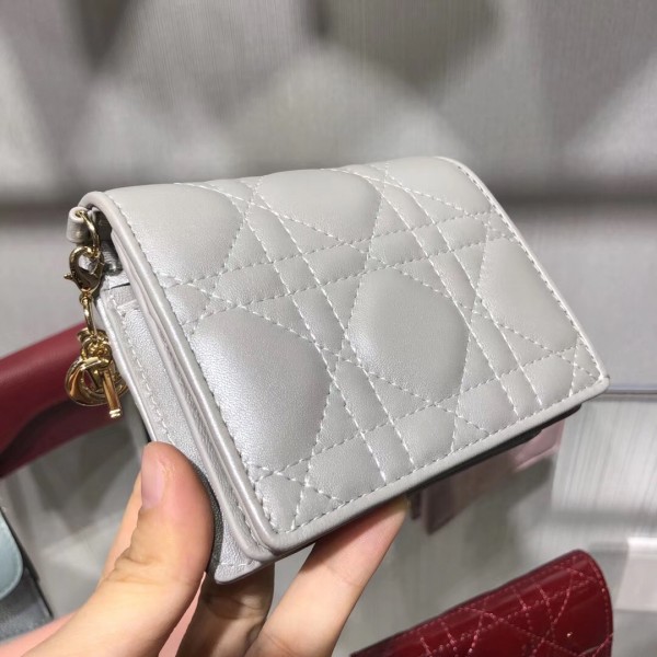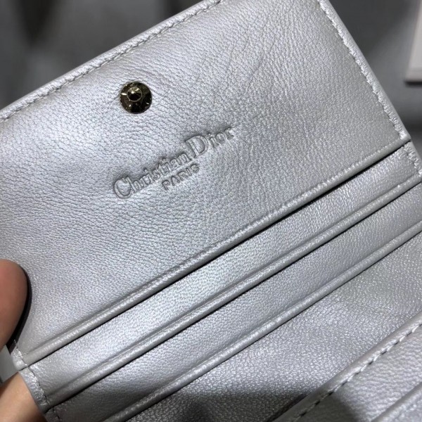Dior Mini Lady Dior Wallet In Opal Grey Pearly Lambskin
