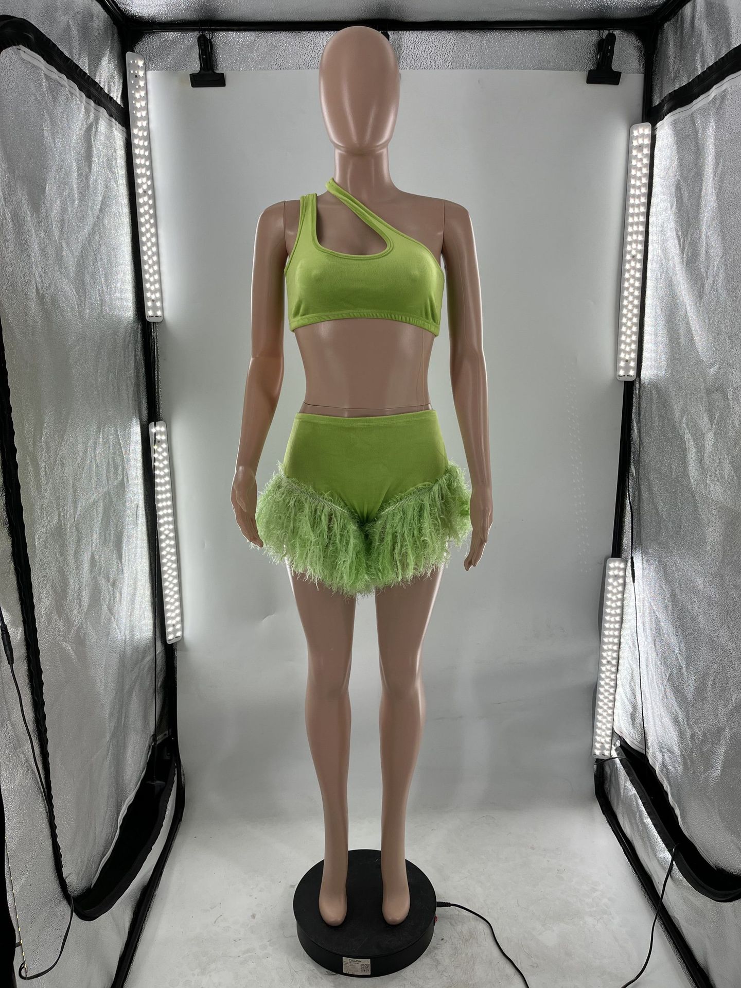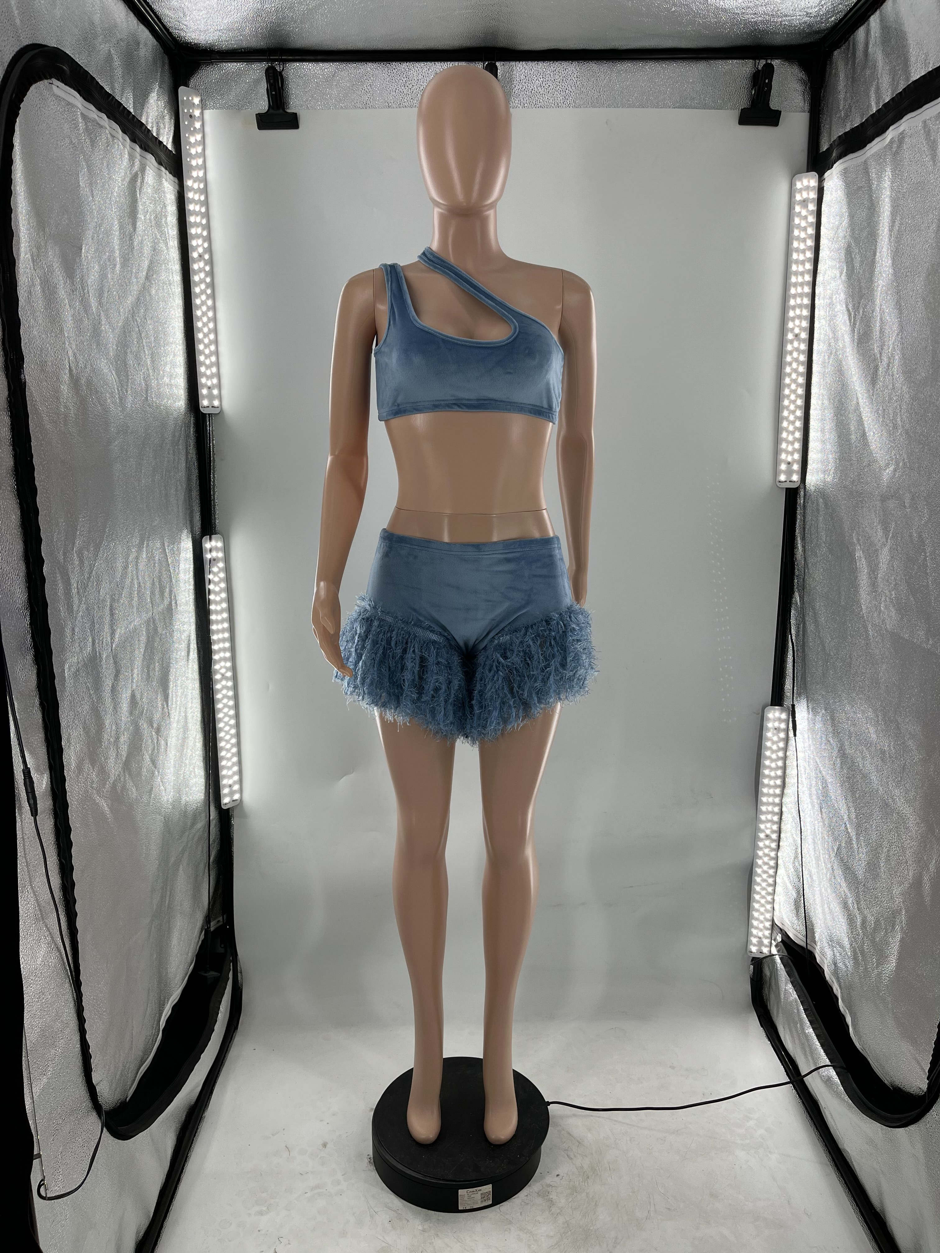 Echoine Solid Feather Fringe Shorts Crop Top Two Piece Set Summer Streetwear Women Sexy Bodycon Tracksuit Party Outfits