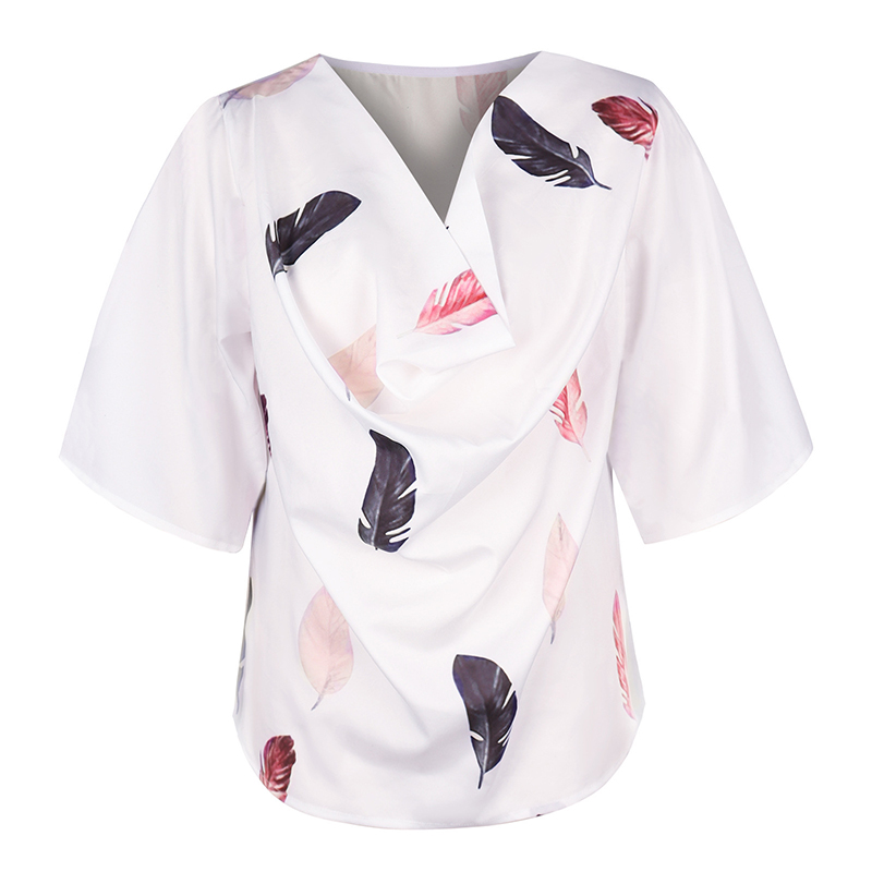 Elegant Print Womens Tops And Blouses Casual Loose V Neck Three Quarter Sleeve Female Tunic Feather Butterfly Blusas Shirt Girl