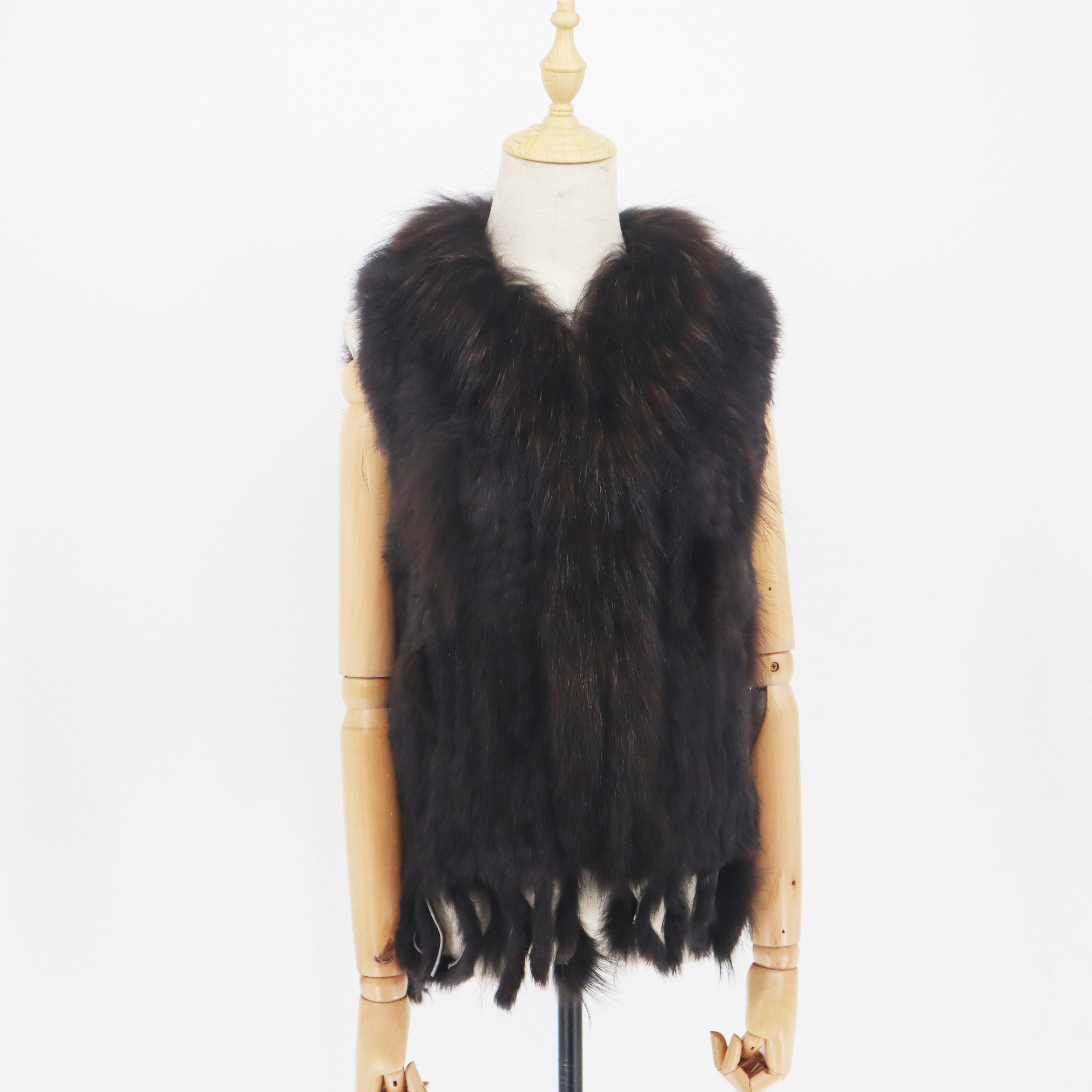 Factory Customized Real Rabbit Fur Tassel Vest High-end Women Knitted Sleeveless Vests Natural Raccoon Fur Jacket