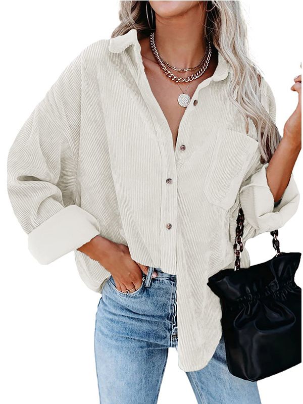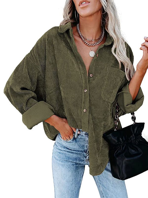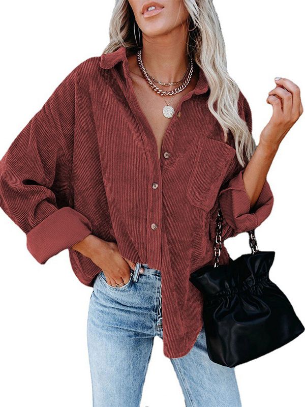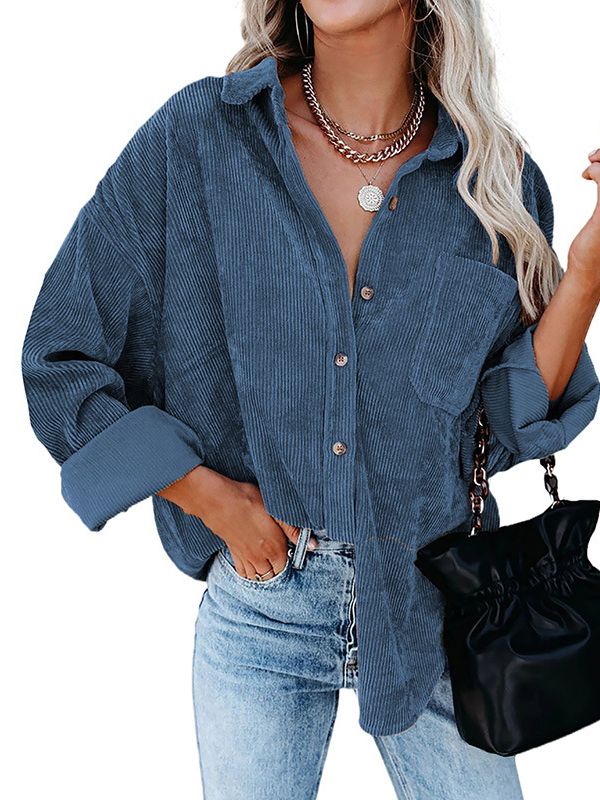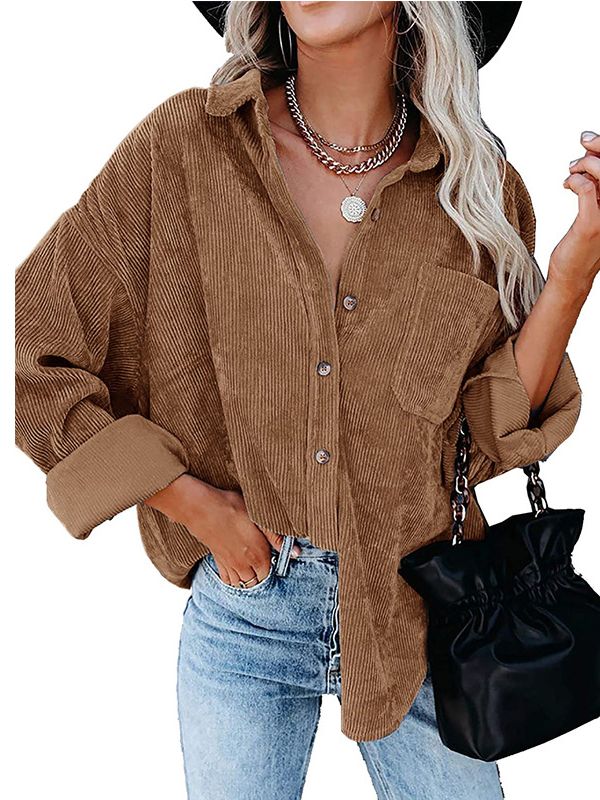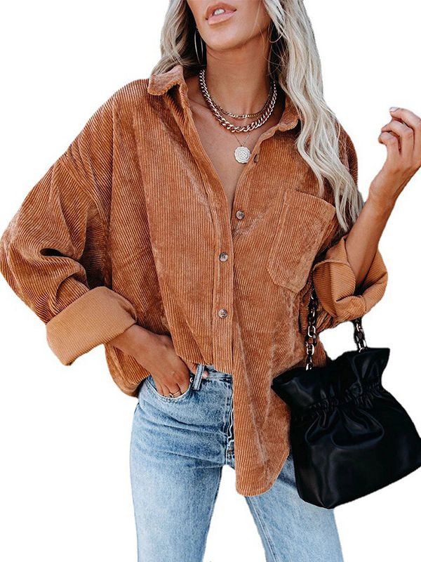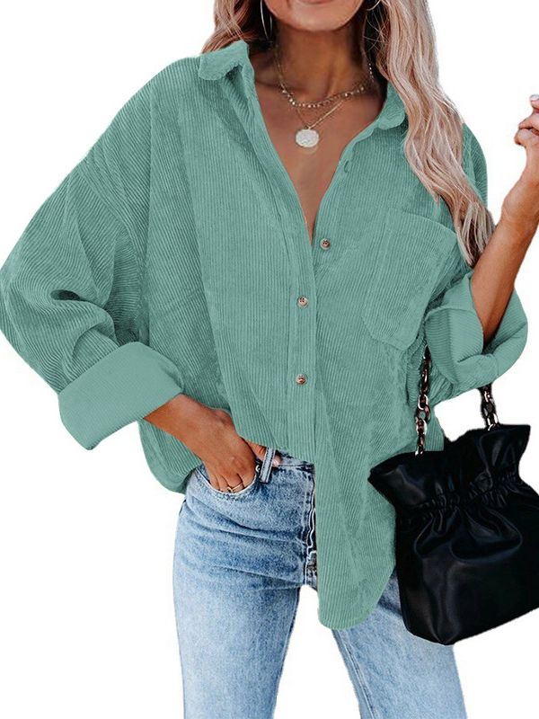 Fall Winter Women's Shirts Long Sleeves Solid Color Loose Style Single Breasted Corduroy Oversize Blouse Girls Outwear