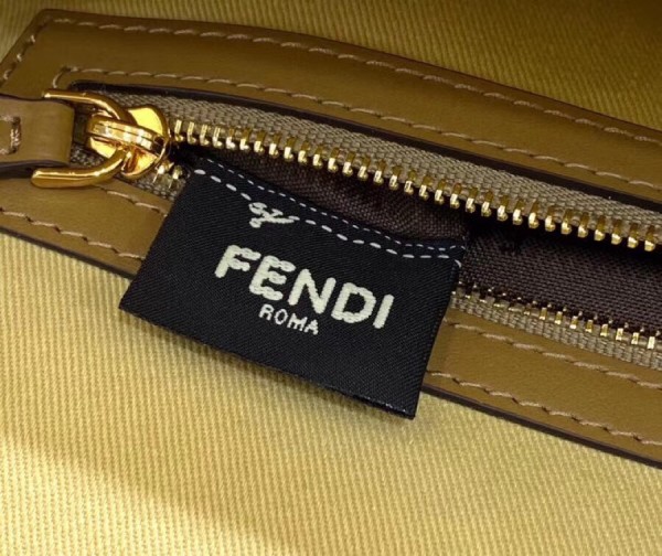 Iconic Baguette bag in medium size, with flap and FF fastening with magnetic clasp. Lining with zip pocket. Can be carried by hand or worn cross-body thanks to the handle and shoulder strap, both detachable. Made of natural straw. Decorated with the FF motif embroidered in tone on tone thread. Edges finished with brown leather trim. Ribbon shoulder strap with Pequin motif.