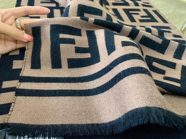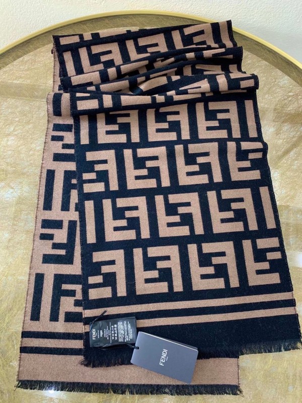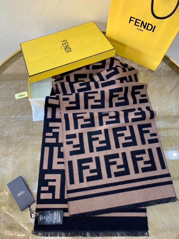 The generously proportioned scarf exudes timeless sophistication. Crafted from a featherlight silk and wool blend, the style features a woven rendition of the House’s FF motif pattern. Trimmed with a striped border in matching tones make this piece easy to combine with chic ensembles.