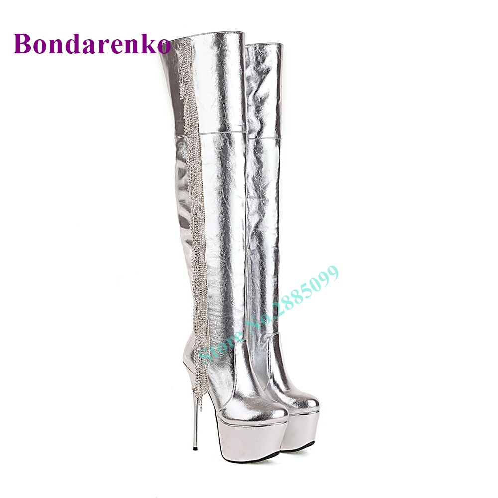 Product Name:Fringe Platform Stiletto Heel Boots Over The Knee Side Zipper Crystal Leather Boots Women Shoe Autume Winter Party Dress Boots