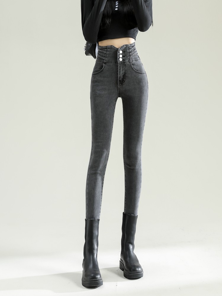 GUUZYUVIZ High Waist Elastic Skinny Jeans Women Autumn Winter Casual Slim Vintage Denim Pencil Pants