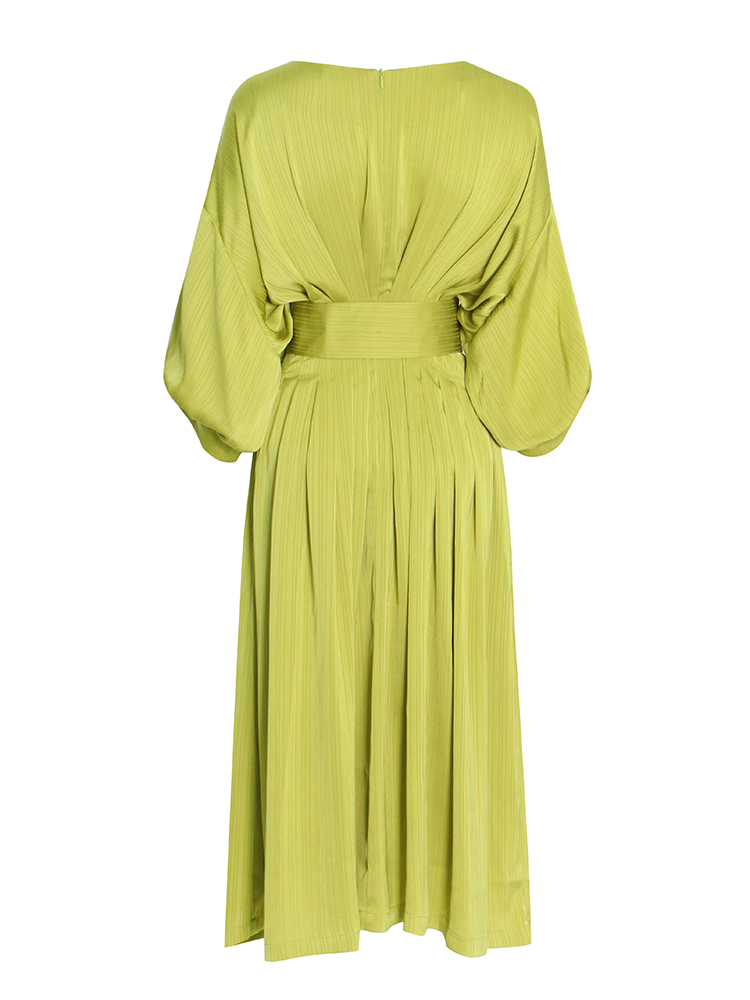 GYMAMAZES Elegant Solid Long Dress For Women Slash Neck Lantern Sleeve Sashes Lace Up Dresses Female Spring Clothing Style