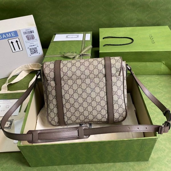 Capturing the original design elements of the first messenger bag, this version emphasizes an interior that is spacious and functional. Crafted from the House’s GG Supreme canvas, the emblematic monogram of Guccio Gucci defines the style.