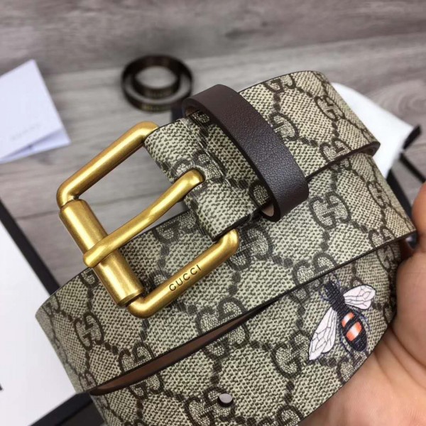 The bee, thought to symbolize wisdom and power, emerges as one of the signature details of Alessandro Michele’s collections. Here, it is printed on the strap of a belt in GG Supreme canvas, a material with low environmental impact.