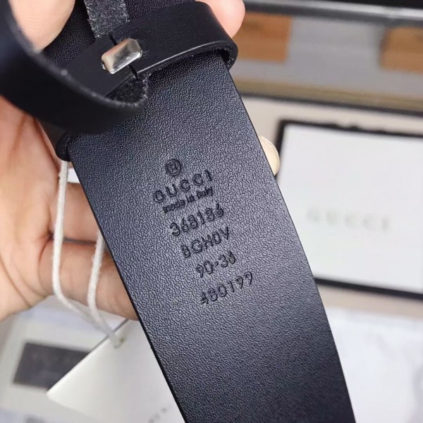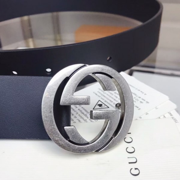 Brand new, Gucci belt comes in sleek black leather with an interlocking GG silver palladium-toned buckle, making this the perfect belt to match with just about any outfit. This classic Gucci belt is a true staple piece.