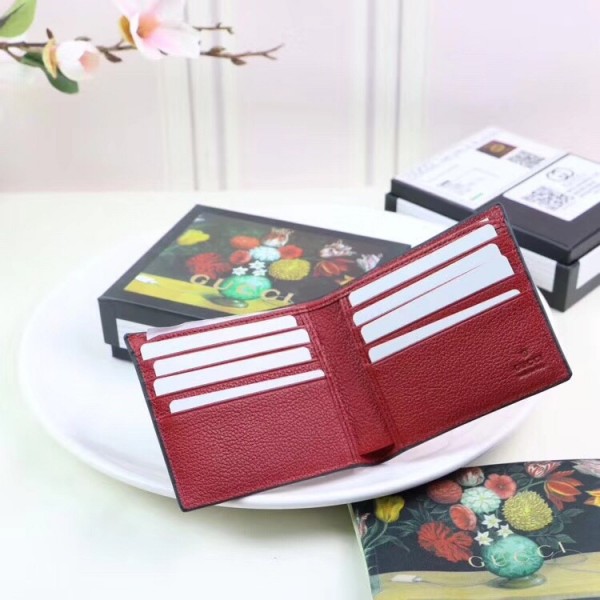 Inspired by vintage prints from the eighties, the Gucci logo is brought to the forefront. The retro-style motif is presented on the front of a bi-fold wallet in supple, textured leather.