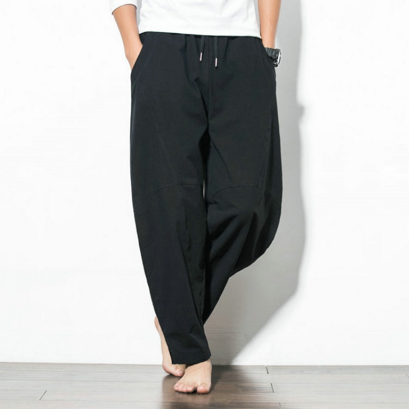 Harem Pants Men's Cotton Linen Loose Pants Male Casual Solid Color Pants Trousers Chinese Style Plus Size Sweatpants